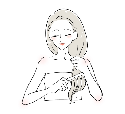 ダメージを受けると髪はスポンジのようなスカスカの状態になり、水分を吸収しやすくなります。この状態の髪は、なかなか水分を蒸発させて乾かすことが出来なくなってしまうのです。スカスカの部分を埋めることで髪の水分保持機能を整え、速乾効果が期待できます。